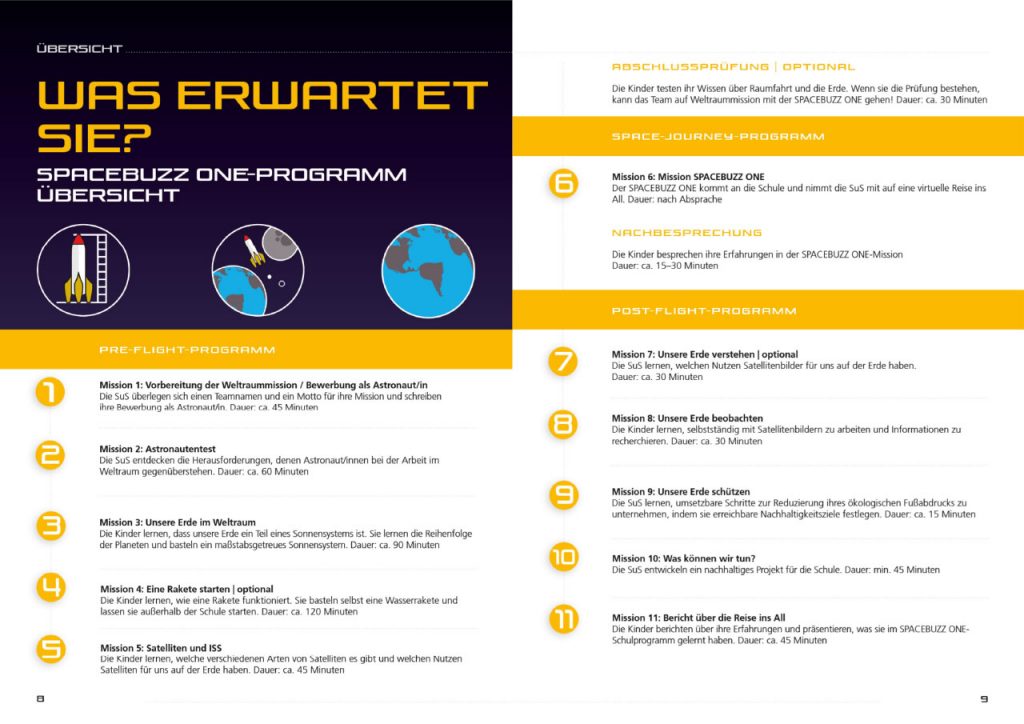Der SPACEBUZZ ONE der Deutschen Raumfahrtagentur im DLR ist viel mehr als bloß eine Rakete auf Rädern. Er ist ein umfassendes Schul- und Bildungsprogramm als Ergänzung zum MINT-Unterricht. Bevor der Truck in die Schule kommt, durchlaufen die Schülerinnen und Schüler ein ausführliches „Astronautentraining“. In verschiedenen Missionen lernen sie mehr über Raumfahrt und ihre Bedeutung für die Gesellschaft. Erst wenn sie dieses Training erfolgreich gemeistert haben, kommt der Truck an die Schule und die „Nachwuchsastronautinnen und -astronauten“ bekommen ihren unvergesslichen Flug in den Weltraum.